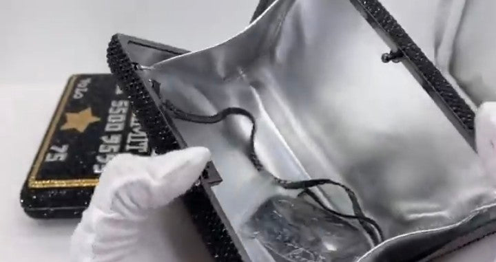 Available in a classic black card style, this clutch not only enhances your overall look but also serves as a statement piece that reflects your unique taste.